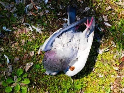 庭に鳩の死骸がいる為、回収してほしい。人工芝の除菌も・・